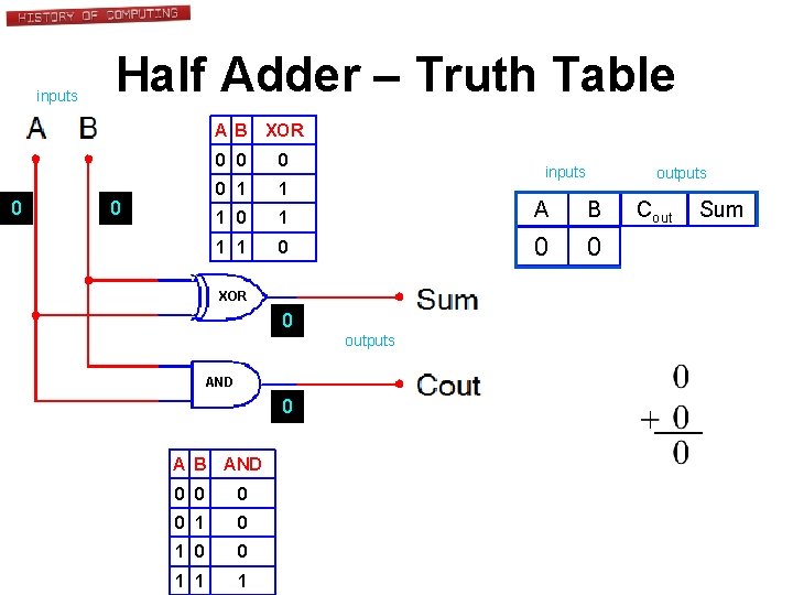 And is used for addition and . Download table | truth table for tsd addition: The xor rule can be used to test bits for equality. Both inputs must be true for the output to be true. Recall from math class that adding numbers results in a sum and a carry.